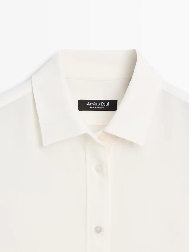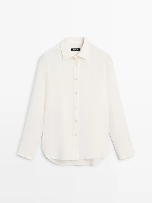Flowing Shirt. Long Sleeves with Buttoned Cuffs. Shirt Collar. Button-Up Front.