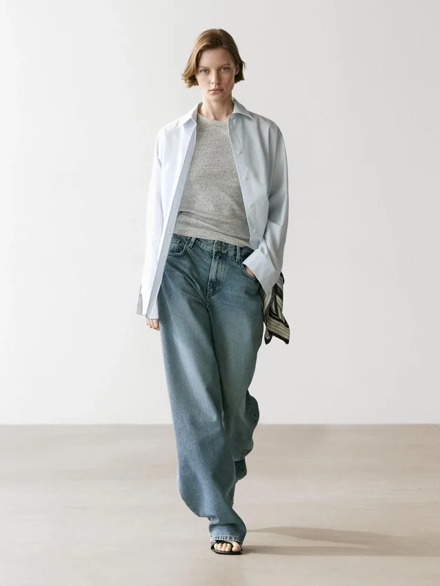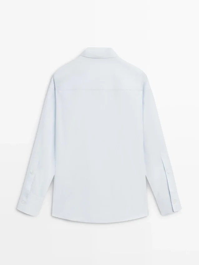 Shirt Made of a Cotton Blend Fabric. Long Sleeves with Buttoned Cuffs. Shirt Collar. Button-Up Front. Poplin Fabric.