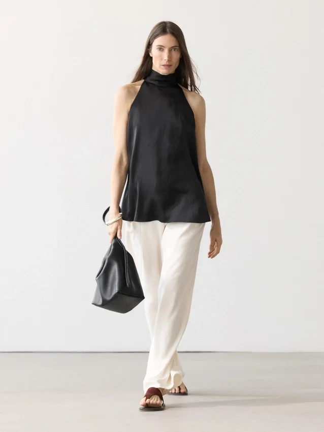 Halter Neck Top. Tie-Neck. Flowing Fabric with a Satin Finish.