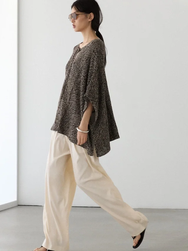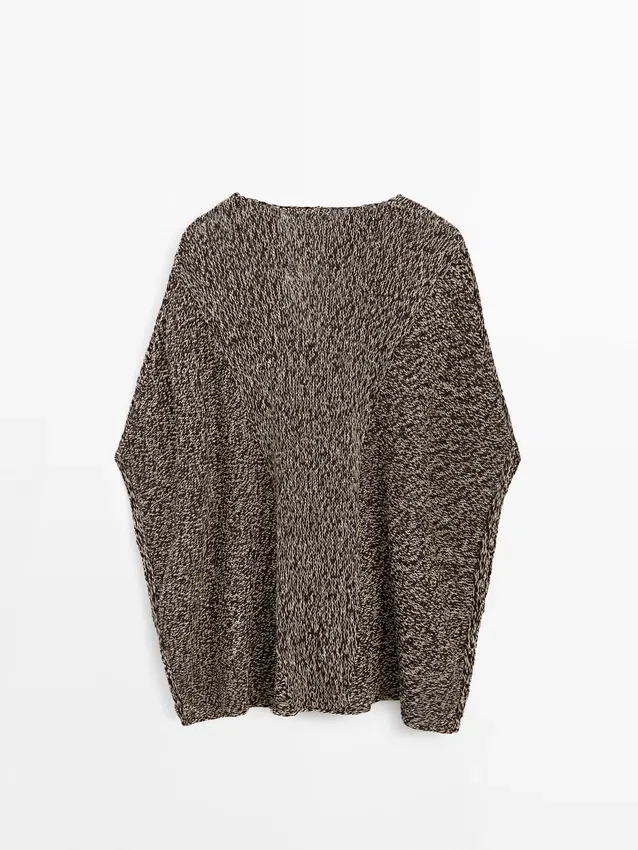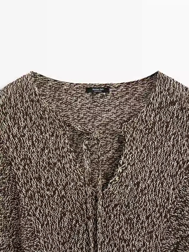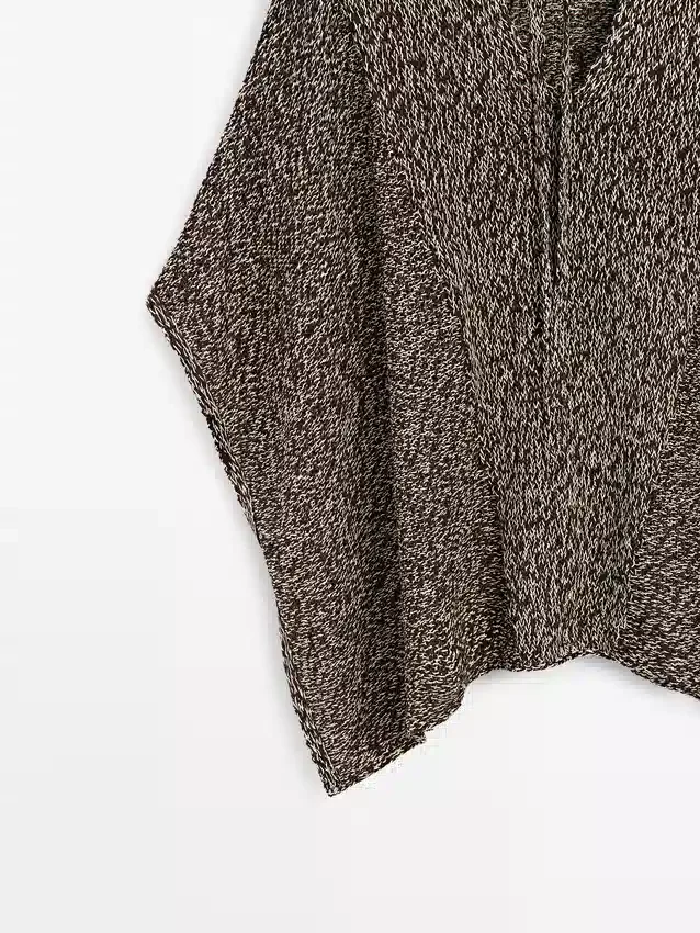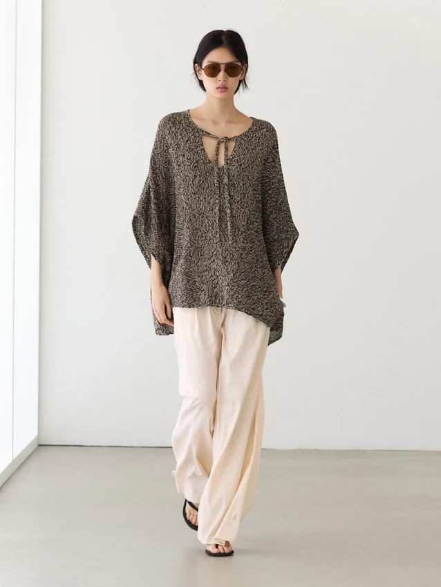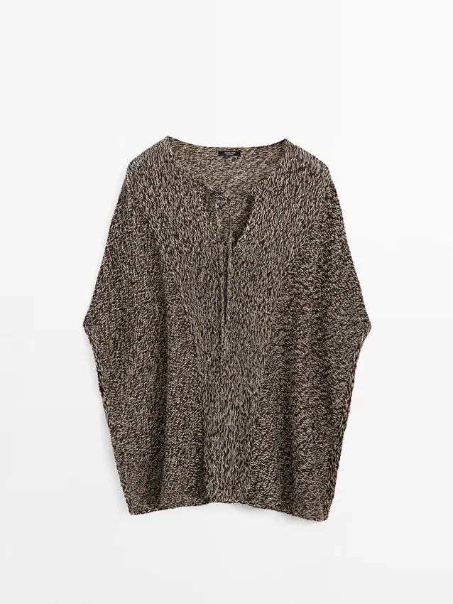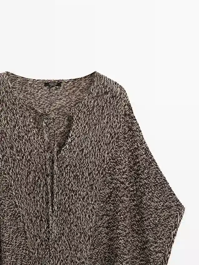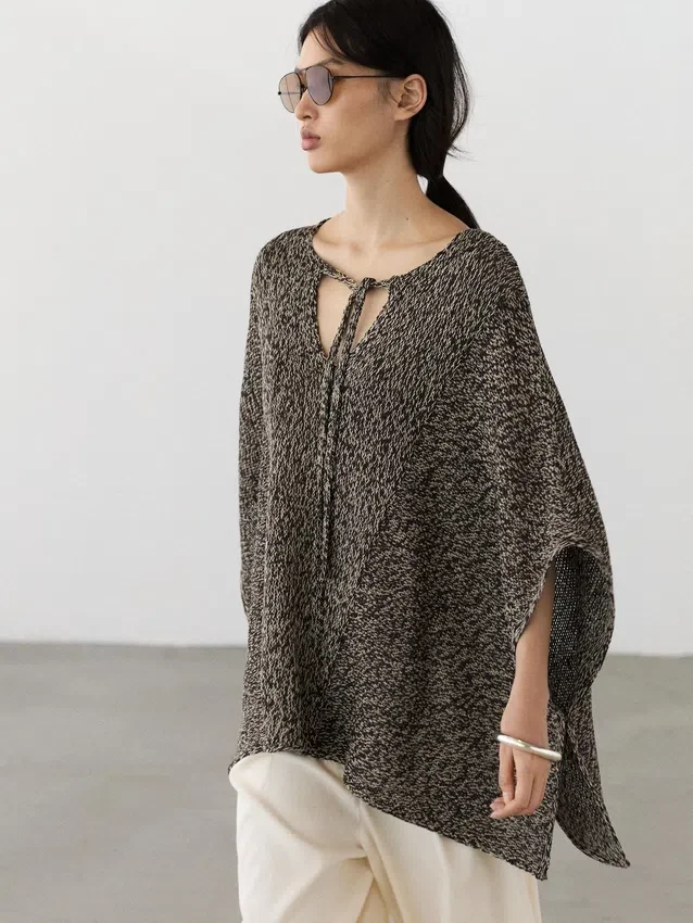 Cotton Blend Knit Cape. V-Neck with Tie Detail. Wide and Relaxed Silhouette, Not Tailored.