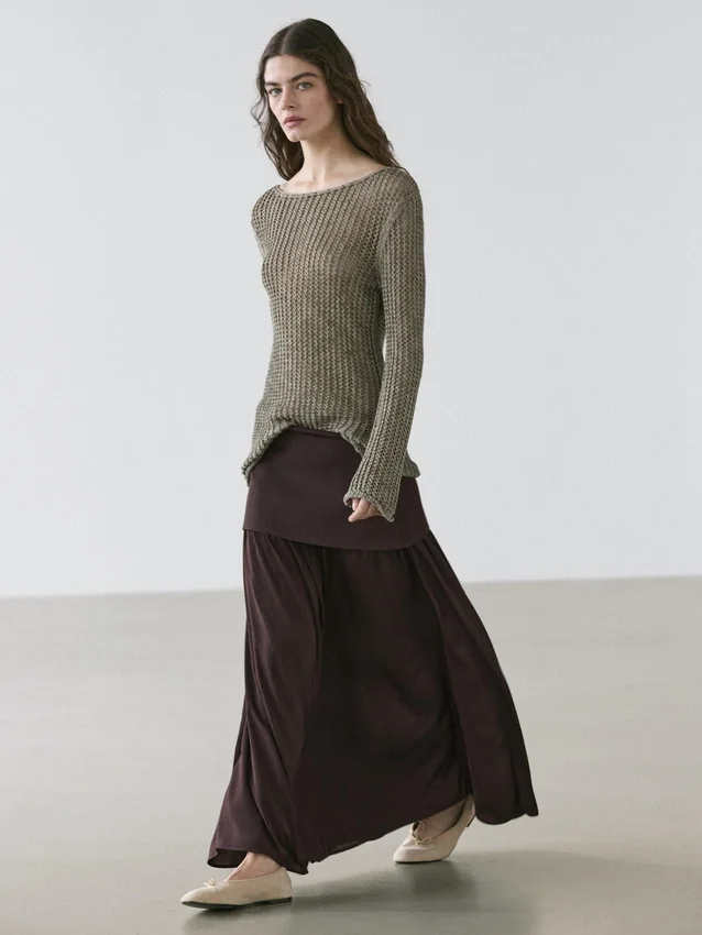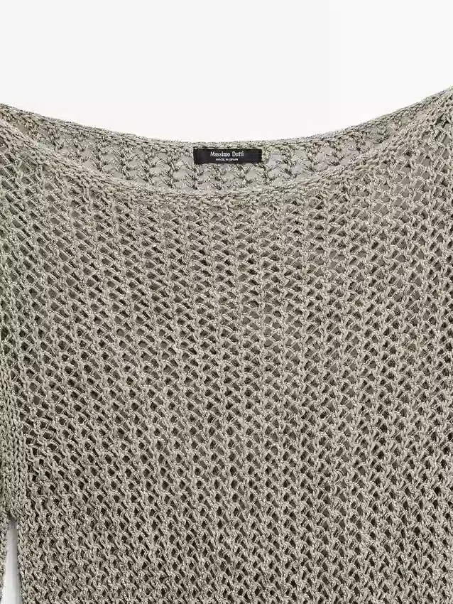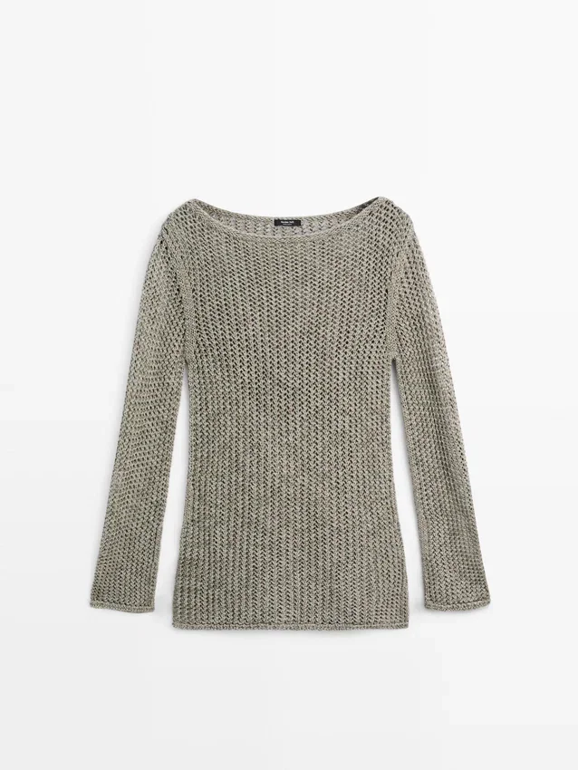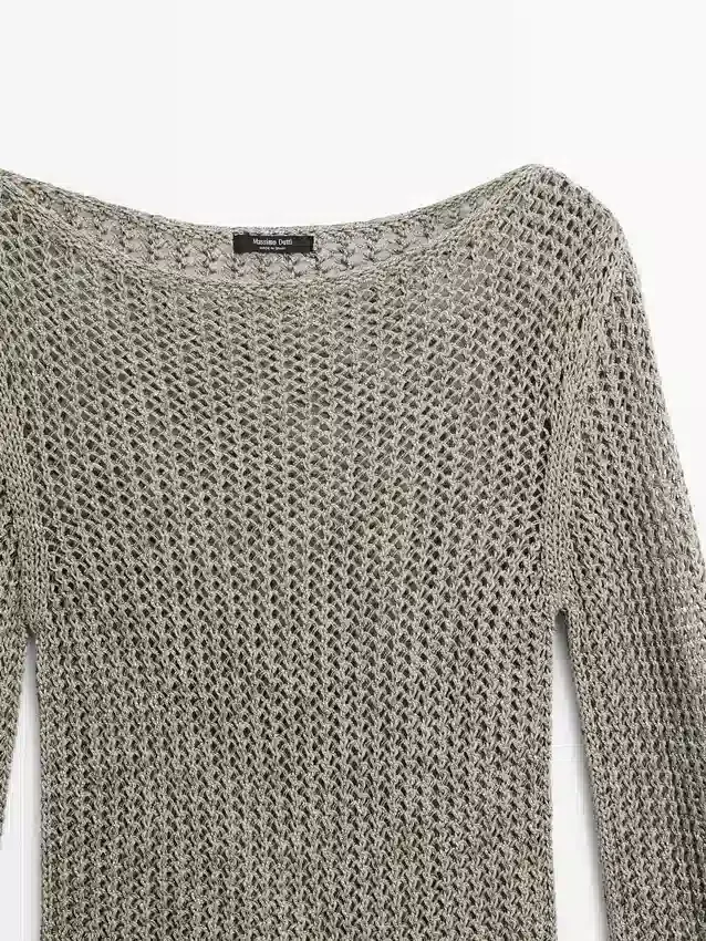 Boat Neck. Long Sleeves. Openwork Fabric .