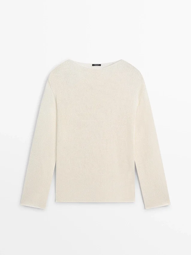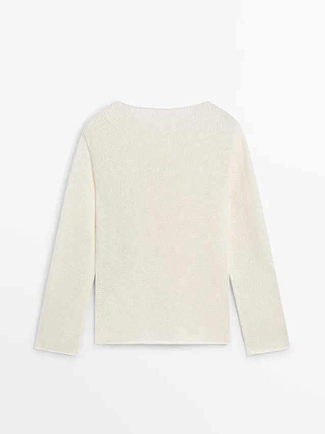 Boat Neck. Long Sleeves. Openwork Fabric .