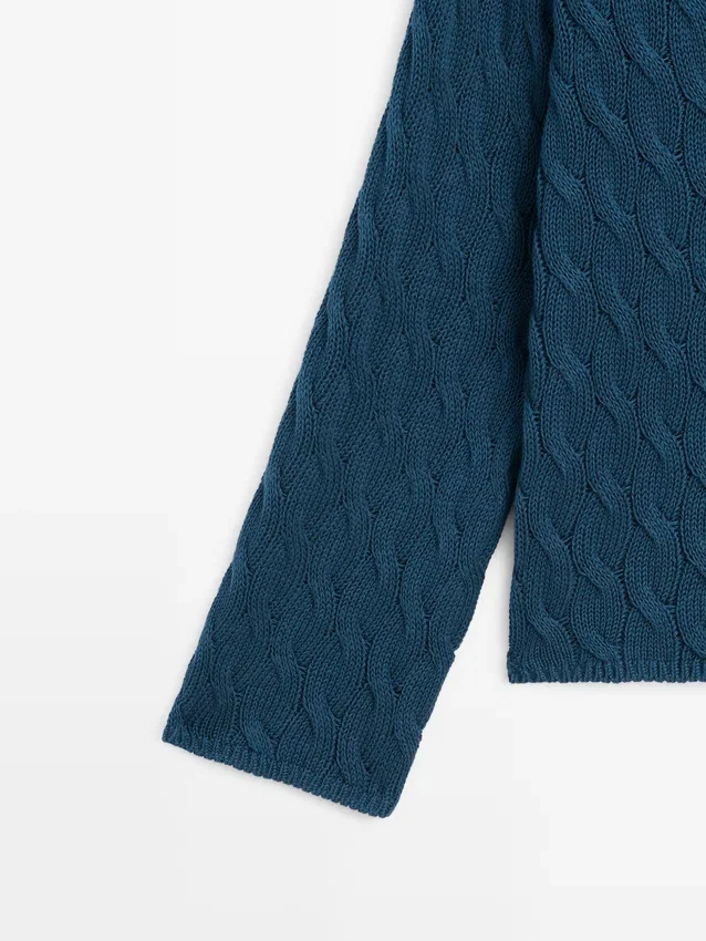 V-Neck . Long Sleeves. Ribbed Trims . Braided Detail.