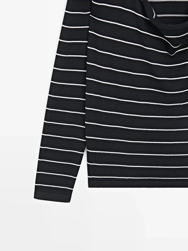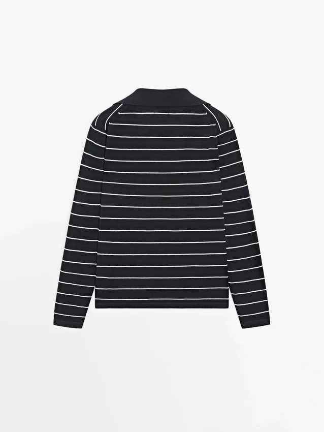 Knit Jumper Made of Cotton Fabric. Johnny Collar. Long Sleeves. Ribbed Trims .