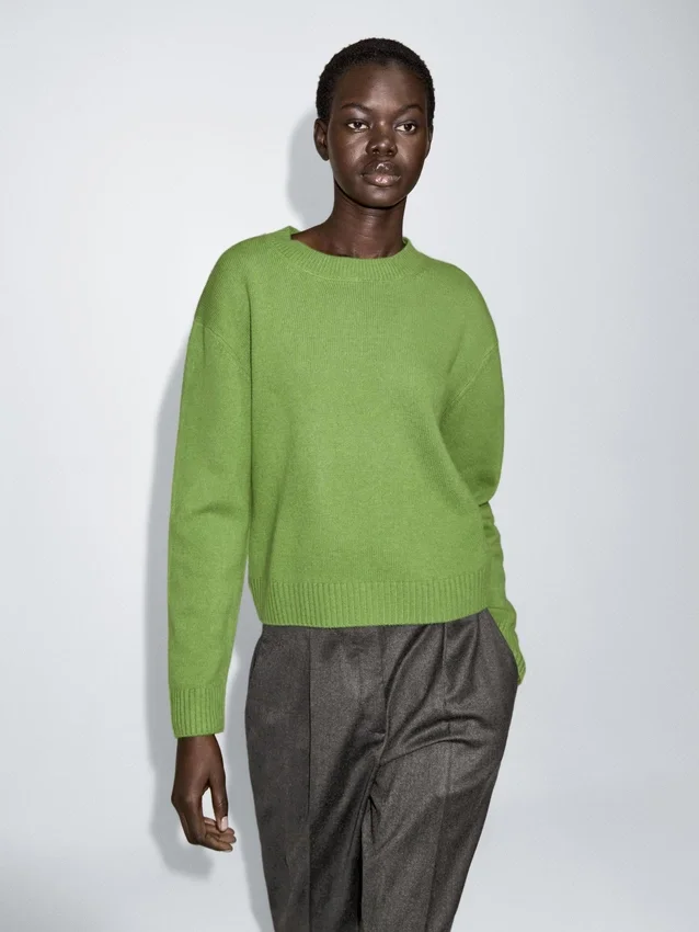Knit Sweater Made of a Wool Blend Fabric . Crew Neck. Long Sleeves. Ribbed Trims .
