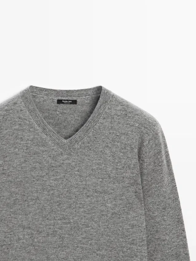 Knit Sweater Made of a Wool Blend Fabric . V-Neck. Long Sleeves. Ribbed Trims .