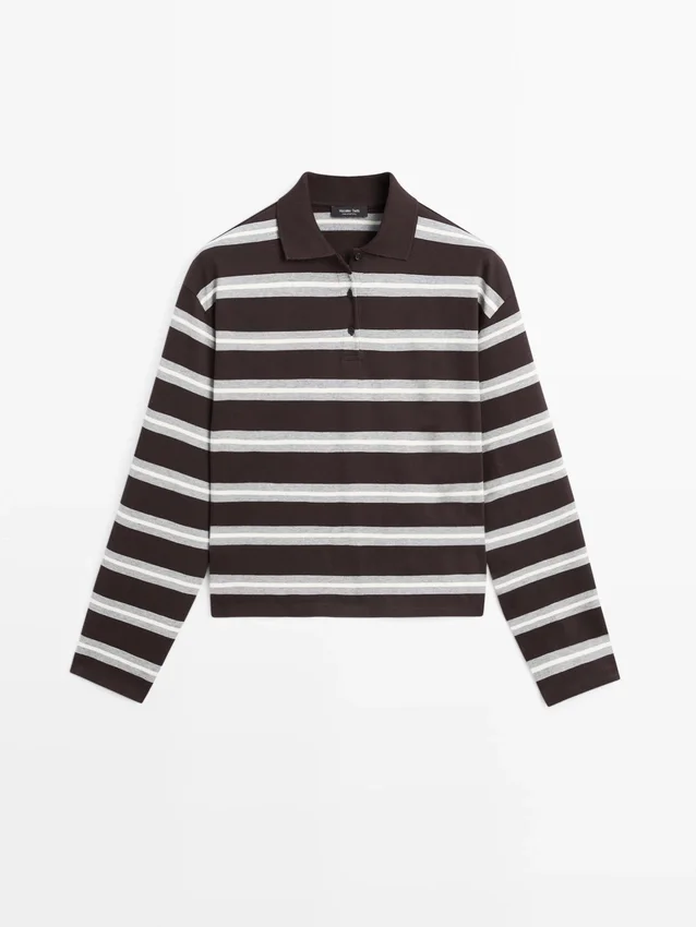 Polo Shirt Made of 100% Cotton. Long Sleeves. Polo Collar with Button Fastening. Striped Print.