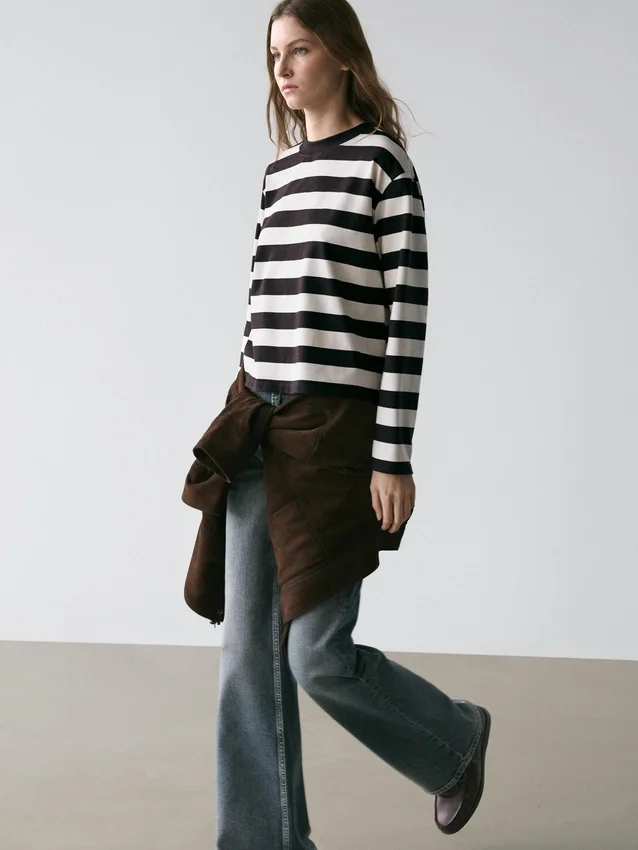 T-Shirt Made of Cotton. Crew Neck. Long Sleeves. Striped Detail.