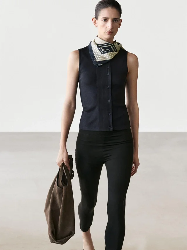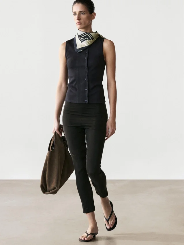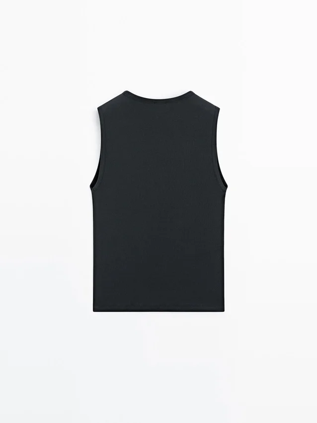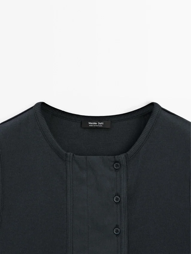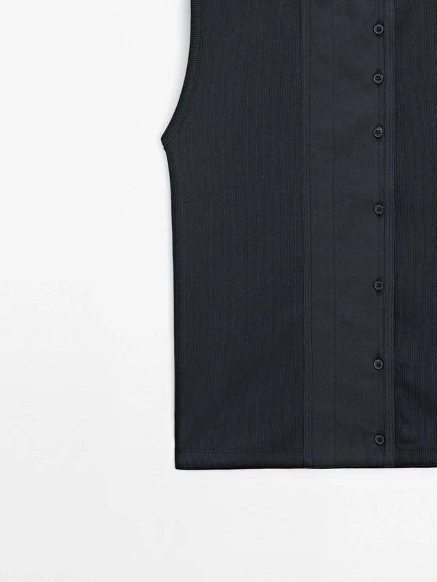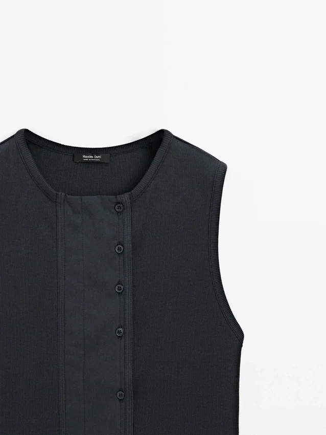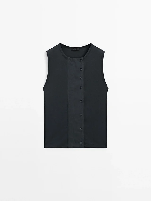 Top Made of Cotton Blend Fabric . Crew Neck. Sleeveless. Button Fastening at the Side.