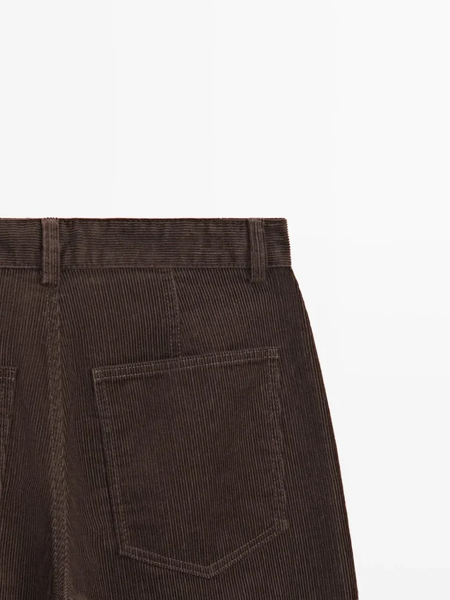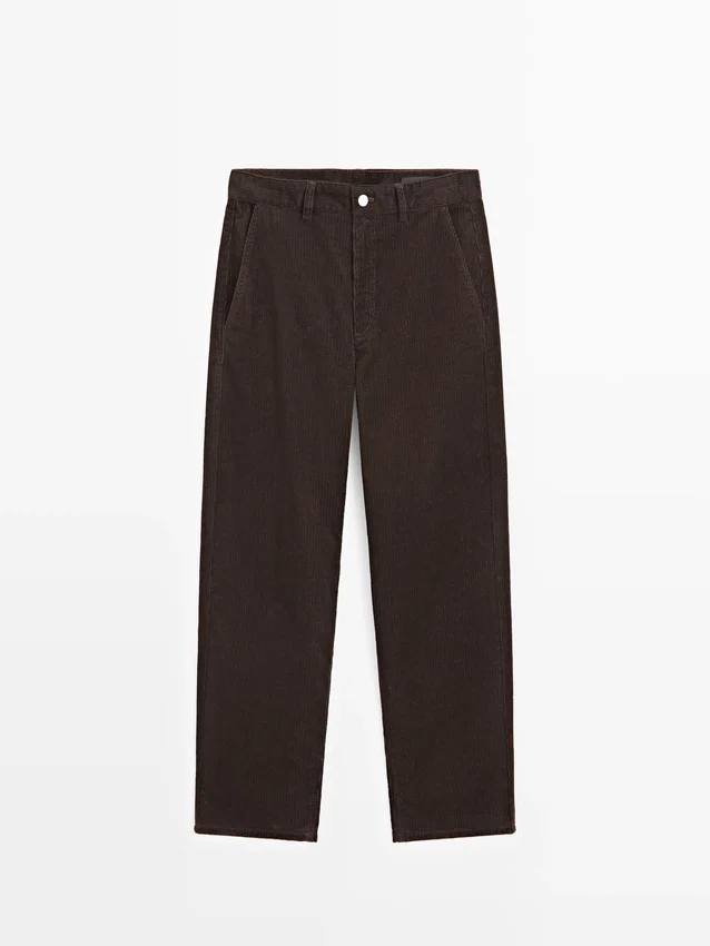 Barrel Fit Pants: This Fit Features a Wider Shape at the Thighs and a Narrower Leg Towards the Ankle, an Intermediate Fit Between Slim and Regular.. Front Zip and Top Button Fastening. Two Patch Pockets at the Back. Two Side Pockets. Corduroy-Effect Fabric.
