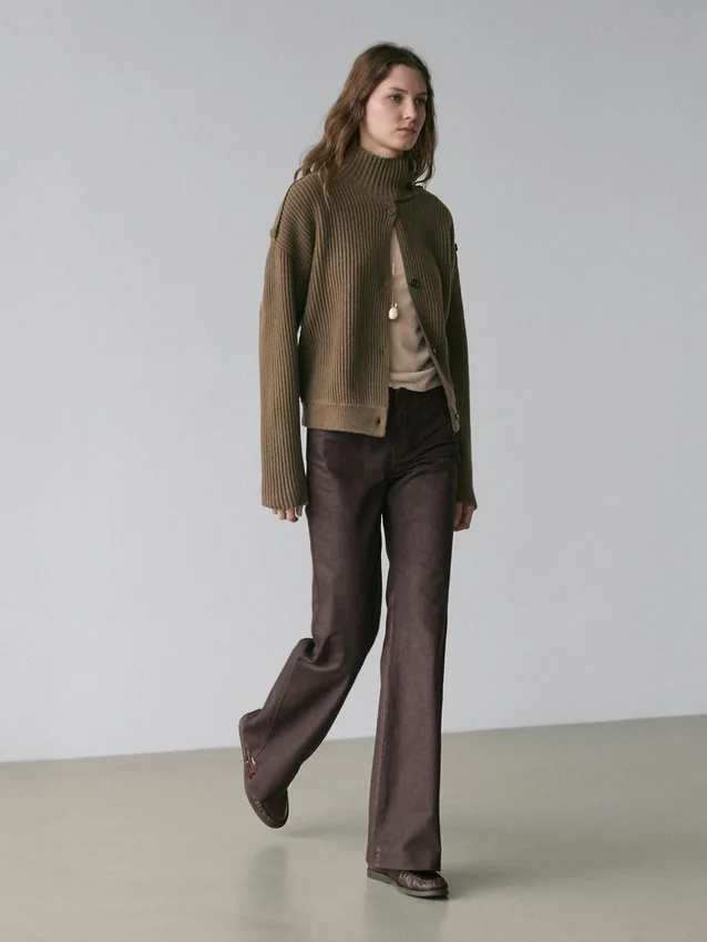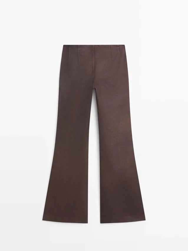 Flare Fit Trousers: This Fit Offers a Cut That Gradually Widens from the Knee to the Ankle, Visually Lengthening the Legs. Concealed Zip Closure with Buttoned Placket. Dart Details on the Front and Back . 100% Cotton Fabric. Waxed Finish Detail with Distressed Effect.