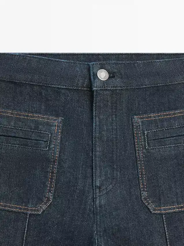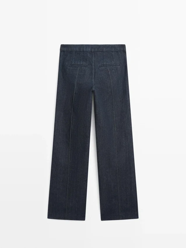 Flare Fit Trousers: This Fit Provides a Tailored Fit at the Hips and Thighs That Progressively Widens out from the Knee, Creating a Flared Effect. Front Zip and Top Button Fastening. Two Front Pockets . Two Welt Pockets on the Back. Seam Details .