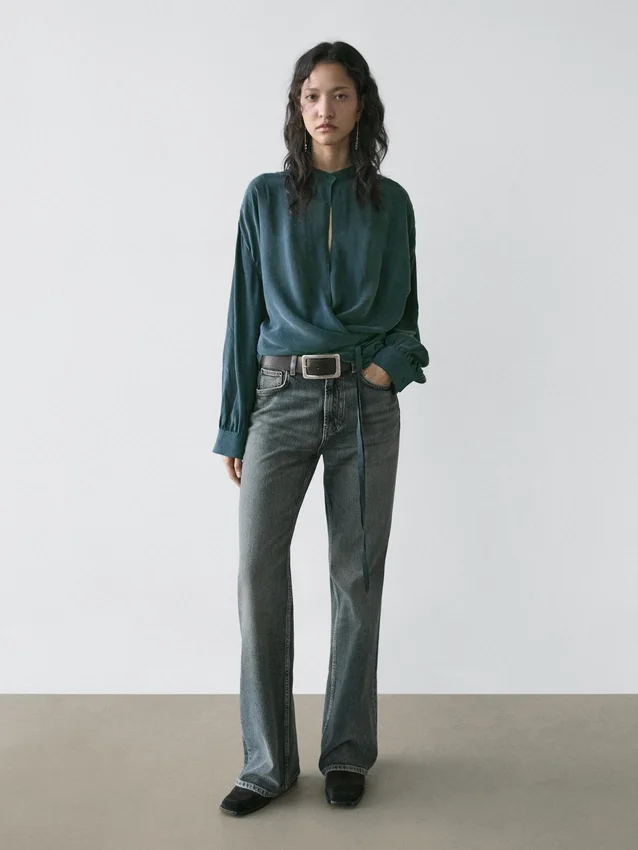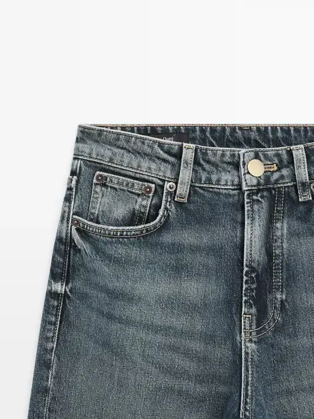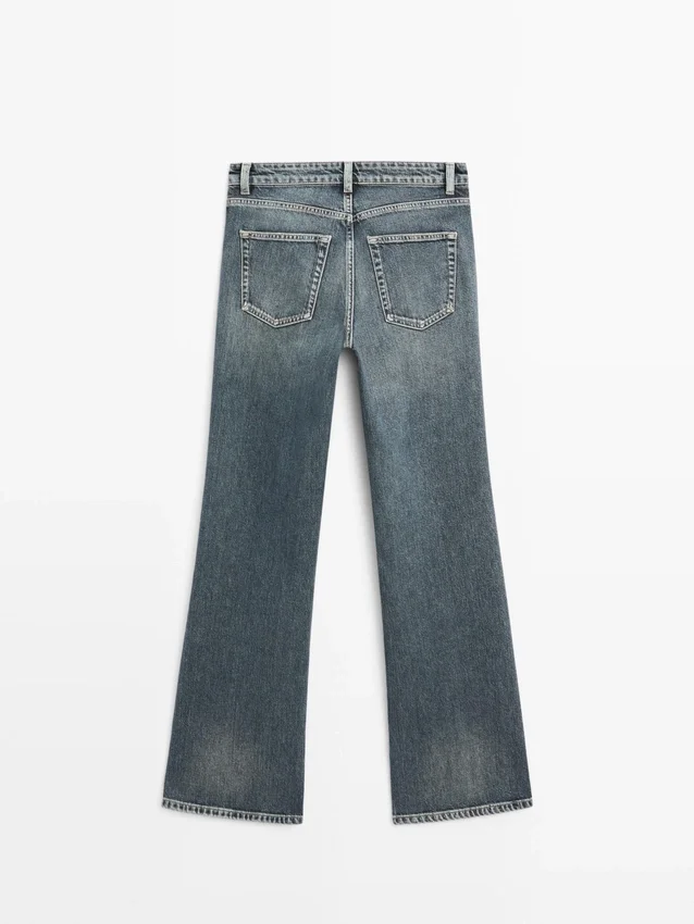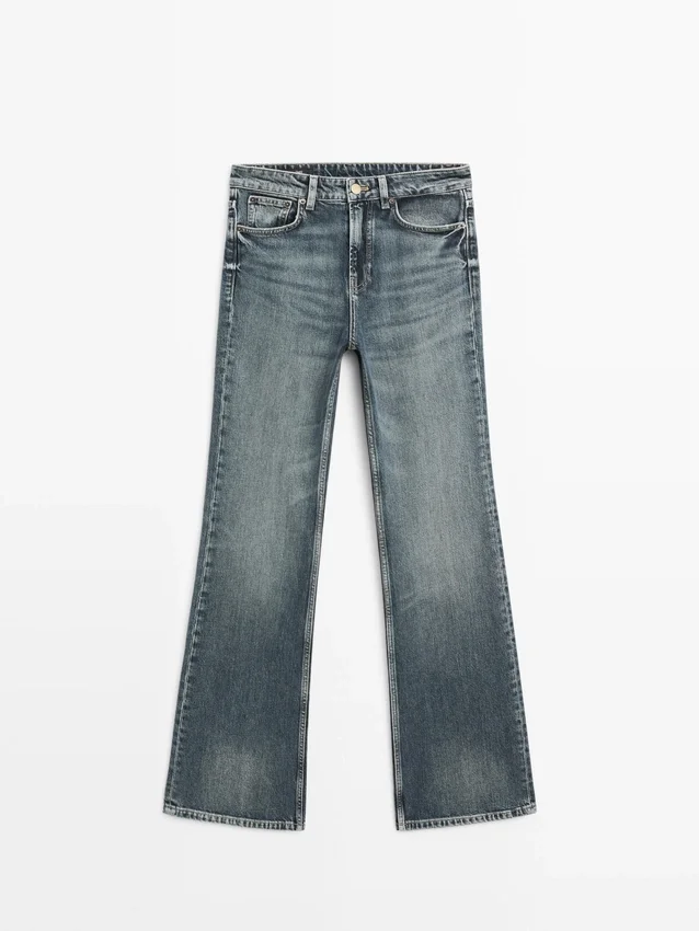 Flare Fit Jeans: This Fit Offers a Cut That Gradually Widens from the Knee to the Ankle, Visually Lengthening the Legs.. Mid-Waist. Front Zip and Top Button Fastening. Five-Pocket Design.