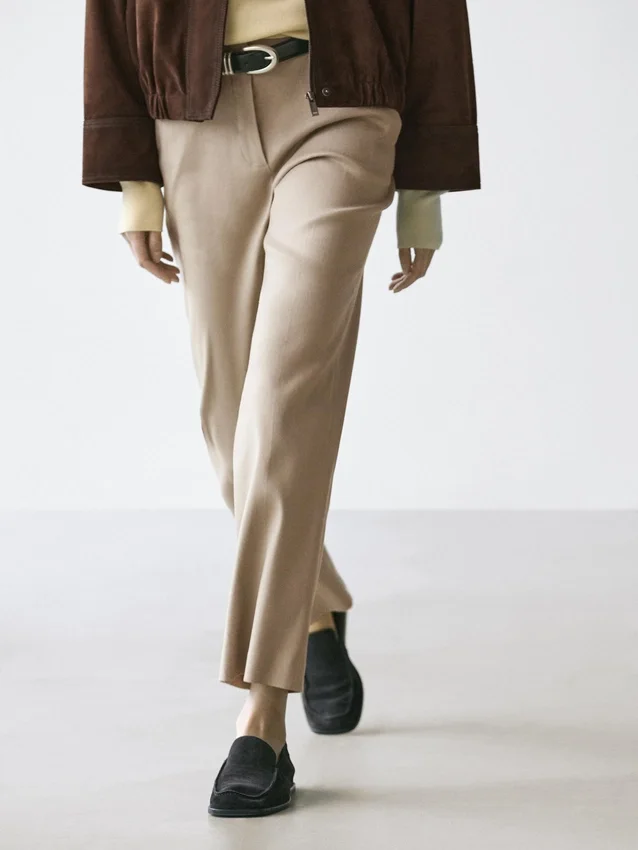Straight-Leg Trousers: Straight Silhouette from Waist to Ankle, Without Additional Leg Adjustments. Trousers Made of a Linen Blend Fabric. Waistband with Belt Loops . Concealed Zip and Hook-And-Eye Fastening. Two Side Pockets. Two Welt Pockets on the Back.