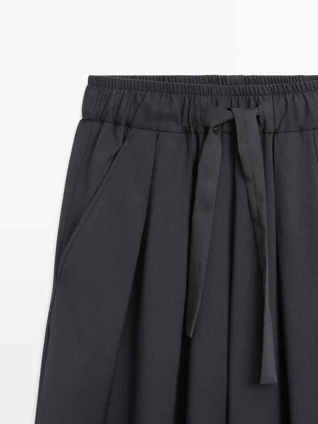Wide-Leg Trousers in a Flowing Fabric. Loop at the Waist. Elasticated Waistband Detail. Two Side Pockets.