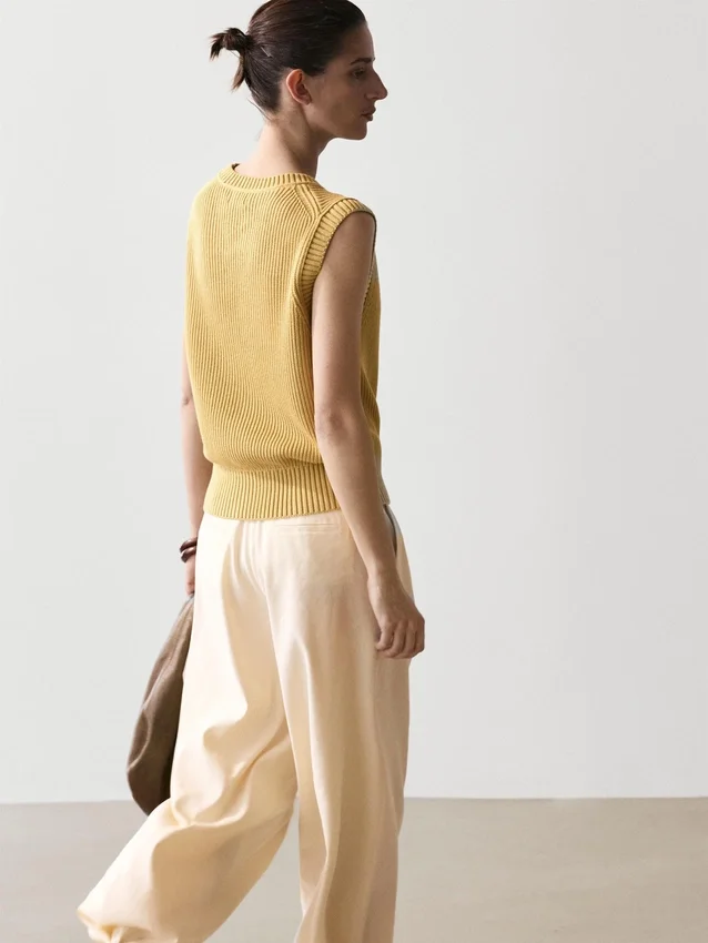 Vest Made of Knitted Fabric. Crew Neck. Sleeveless. Ribbed Trims . Ribbed Fabric.