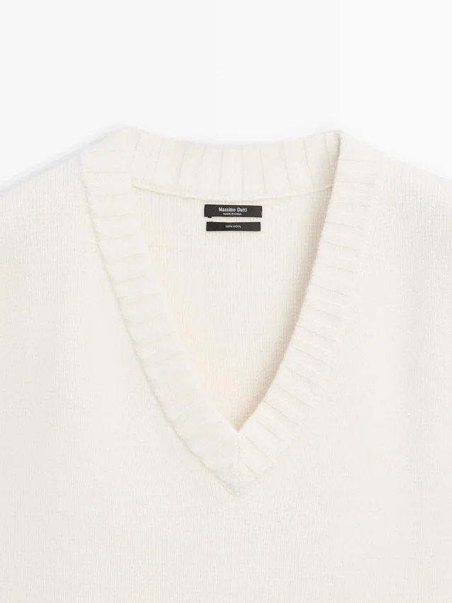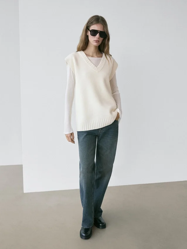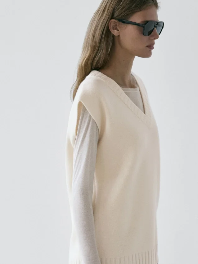 Vest Made of Wool Fabric. V-Neck. Ribbed Trims . Wide and Relaxed Silhouette, Not Tailored.